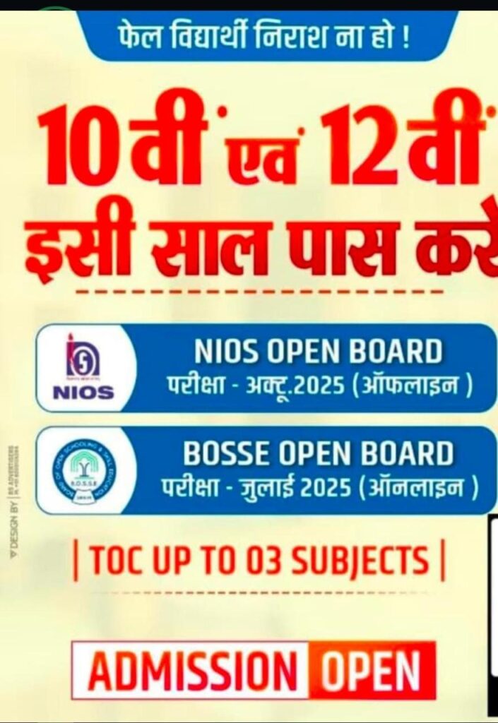 For students who missed school or want to complete board exams through NIOS and recognized boards